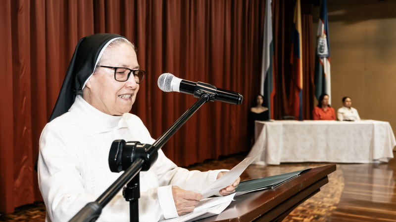 La ceremonia fue conducida por la maestra de ceremonias Jennifer Ramírez y contó con la presencia de directivas universitarias, docentes, estudiantes y familiares, quienes acompañaron este momento significativo en la formación académica de los futuros bacteriólogos.