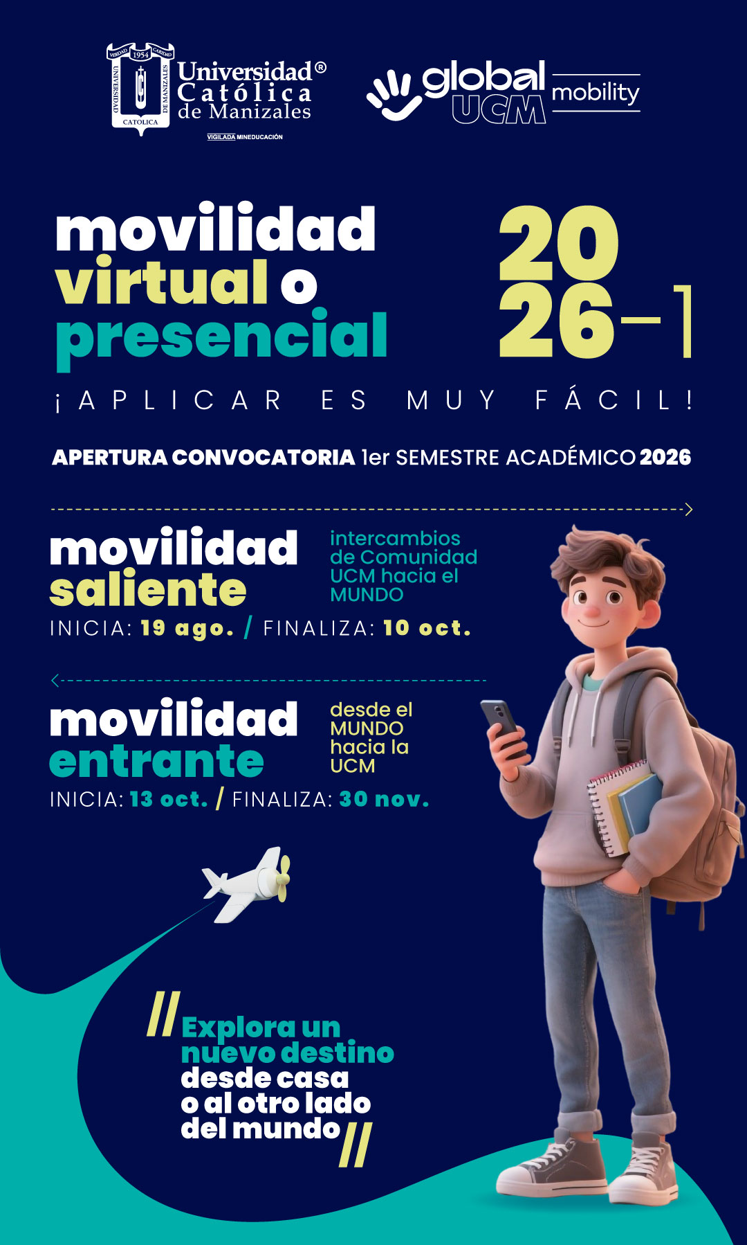 La UCM te invita a participar de su convocatoria de movilidad saliente y entrante para estudiantes, a continuación, podrás encontrar toda la información que necesitas para comenzar el proceso y explorar un nuevo destino desde casa o al otro lado del mundo.