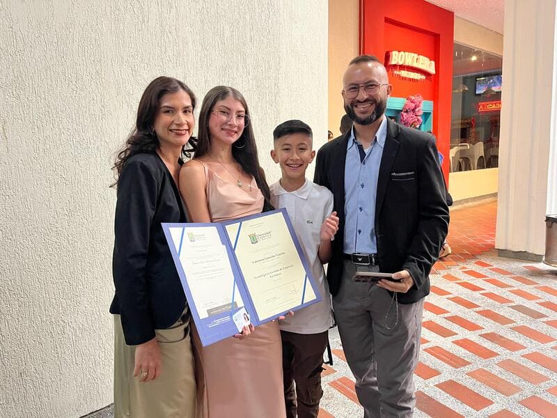 El acto se realizó el 12 de diciembre y contó con la presencia del rector de la Universidad Católica de Manizales, Dr. Cristian Camilo Gutiérrez Restrepo, quien presidió la ceremonia junto con Hna. Gloria Estela Rolón Díaz, vicerrectora académica, Magíster Catalina Triana Navas, secretaria general, la decana de la Facultad de Administración, Natalia Zuluaga, y Sonia Isabel Villegas, coordinadora de Desarrollo Social del Comité de Cafeteros de Caldas, quienes acompañaron a los estudiantes en un momento que celebró el esfuerzo constante y el compromiso que cada uno sostuvo durante su proceso académico.